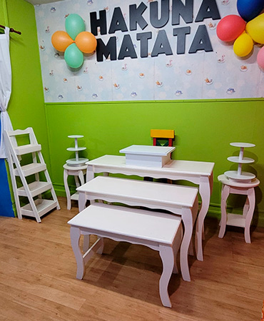 En nuestro salón infantil, cada rincón está pensado para que los chicos se sientan libres, acompañados y felices. Hakuna Matata es un espacio lleno de color, movimiento y juegos diseñados para despertar la imaginación y crear recuerdos inolvidables. ¡Acá todo está preparado para que la fiesta se convierta en pura aventura!