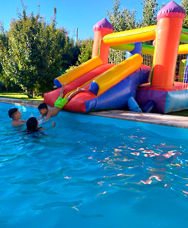 Bienvenidos al Salón Fiestas Familiares Nuestro Servicio Incluye La Casa Quinta 🏡 tiene capacidad hasta 30 personas, se alquila solo para eventos infantiles y familiares. El lugar Incluye vajilla de platos, vasos, copas, cubiertos, olla, bracero, platos de torta. El equipamiento tiene heladeras con freezer grande, cocina industrial con horno grande, horno eléctrico, pava eléctrica, equipo de mate. Contamos con fogón externo con parrilla, asador, disco, heladera y baño. Piscina de 7 x 3 mts."al aire libre", inflable, Salón con equipo de música, (no permitimos equipos de audio potenciados), Smart TV, Señal de WiFi para poner la música o videos que quieran, la casa tiene además una galería techada con mesa y living. Estacionamiento dentro del predio para aprox. 10vehiculos. Tarifas: El valor con todo incluido es de 80.000$ la hora, más un adicional de 95.000$ x única vez, de los cuales si no hay roturas, mal uso de las instalaciones, excesos de desorden o daños evitables se reintegran hasta 45.000$, los otros 50.000 "o más "(de acuerdo a como quede después del evento) son para la limpieza. O sea que usted no debe levantar ni limpiar a la hora de retirarse. Alquiler. Alquiler desde las 10:00 hs en adelante Ud elige según la disponibilidad, y se permite estar 30 minutos antes para preparar el salón y 15 minutos de tolerancia para retirarse. La casa está ubicada en Barrio St. Norte cerca del gimnasio municipal número 4. Días y Horarios: Capacidad máxima para 30 personas Alquilar un espacio para eventos es la mejor opción para celebrar una ocasión especial con comodidad y elegancia. Lunes a Domingos Así mismo podemos ajustar tu evento a tu necesidad, según la disponibilidad. (consultar) Reservas: Se reserva con el 50% y la diferencia restante al momento del evento. ¡Recordá! Consultar disponibilidad para tú evento y reservar la fecha con anticipación.