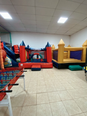 Cumpleaños Infantiles! Exclusividad del salón por 3 horas Estacionamiento propio a disposición 30 niños y 60 adultos Decoración Básica Mesa Principal y Candy Bar 2 escaleras para bolsitas Baúl de regalos Invitaciones Virtuales Ambiente climatizado Servicio de Emergencia médica Horno, pava eléctrica y Freezer NUESTRO JUEGOS Laberinto de 3 niveles con toboganes, obstáculos y pelotero. 2 Juegos inflables, uno con tobogan Mesa de pool tamaño profesional Metegol Cama elástica Plaza blanda para los más chiquitos con juegos acorde a la edad ¡Recordá! Consultar disponibilidad para tú evento y reservar la fecha con anticipación.