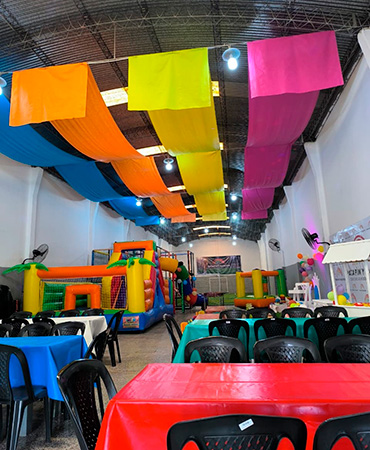 Somos mucho más que un salón de fiestas; somos un espacio diseñado para la alegría de los niños, donde cada rincón está pensado para que la energía y la imaginación no tengan límites. Con una estética colorida y un ambiente súper amplio, te invitamos a festejar con nosotros esos momentos que quedan guardados para siempre en el corazón.