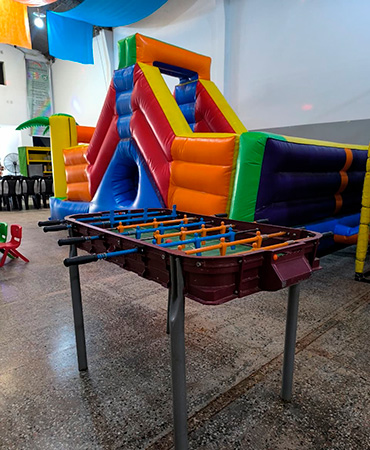 Bienvenidos al Salón Cumpleaños Infantiles! Queremos que conozcas cada detalle de lo que tenemos preparado para tu próxima fiesta. ¡Mirá todo lo que ofrece nuestro salón! Contamos con una cancha de fútbol de césped sintético techada, sin duda la estrella del salón de dimensiones increíbles. Es el lugar perfecto para que los pequeños cracks desplieguen todo su talento, corran con total libertad y vivan su propio mundial en cada cumple. ¡El deporte y la diversión se juegan acá! Nuestra zona de inflables con estructuras de gran altura, toboganes y túneles llenos de color, los chicos pueden saltar y trepar con total seguridad. Es un circuito de pura adrenalina visual que llena el espacio de vida. Para los más chiquitos, diseñamos un sector especial de estimulación temprana. sube y baja, pisos de goma eva, juegos didácticos, un mini pelotero un inflable y un mini tobogan. ¡La competencia sana no falta! Contamos con metegol profesionales para que los chicos (y los no tan chicos) se diviertan en equipo, poniendo a prueba sus reflejos mientras esperan el momento de la torta. Nuestra área de recepción está equipada con mesas vestidas de colores vibrantes y sillas cómodas para todos los invitados. Con una decoración aérea de telas que visten todo el salón y una iluminación cálida, creamos la atmósfera perfecta para que los adultos disfruten mientras los peques juegan sin parar. ¡Vení a conocernos y hacé que tu cumple sea inolvidable! 📍 Estamos en Salta Capital. ¡DIVERTITE EN EL SALÓN MÁS COMPLETO! COMBO 1 Cancha de fútbol techada de 200m² con césped sintético de primera calidad. Pelotero estructural. Pelotero inflable. Metegol. Plaza blanda con inflable para los más peques. Sector especial para la torta, bolsitas y regalitos. Comedor para niños y adultos. Tarjetas de invitación digitales personalizadas. Staff para atención Opcionales: Carrito de dulces Cabina de fotos Todos los combos incluyen seguro de emergencias médicas. Consulta otros Combos COMBO 2, 3, 4 Y 5 ¡Recordá! Consultar disponibilidad para tú evento y reservar la fecha con anticipación. Un recorrido por nuestro mundo de juegos